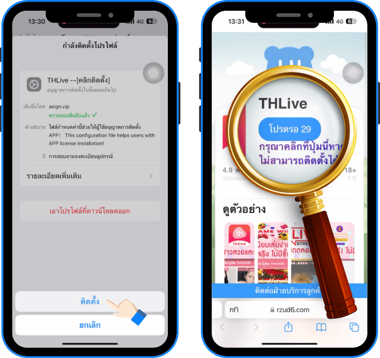 7.กลับมายังไฟล์แอป และติดตั้ง THLive ต่อไป