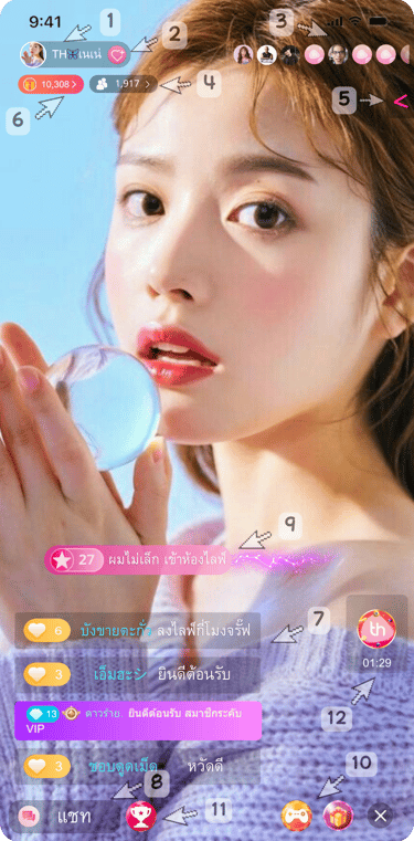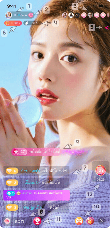 9.แถบแสดงชื่อผู้ใช้งานเข้าห้องไลฟ์